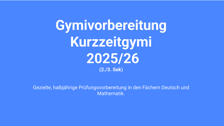 Wir bieten Gymikurse, Nachhilfeunterricht, sowie Intensivkurse zur Gymivorbereitung und Prüfungssimulationen an.